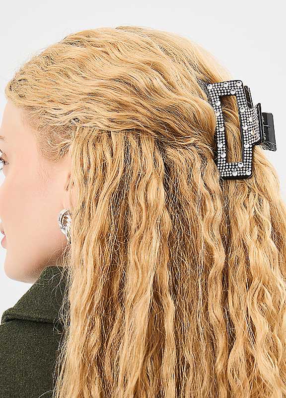 Add a little shimmer to your daily 'fits with this embellished claw clip. Dotted with an assortment of small and large rhinestones, it'll be the saviour on bad hair days.Wipe clean50% Plastic, 405 Glass, 10% PolyesterLength approx. 10 cm