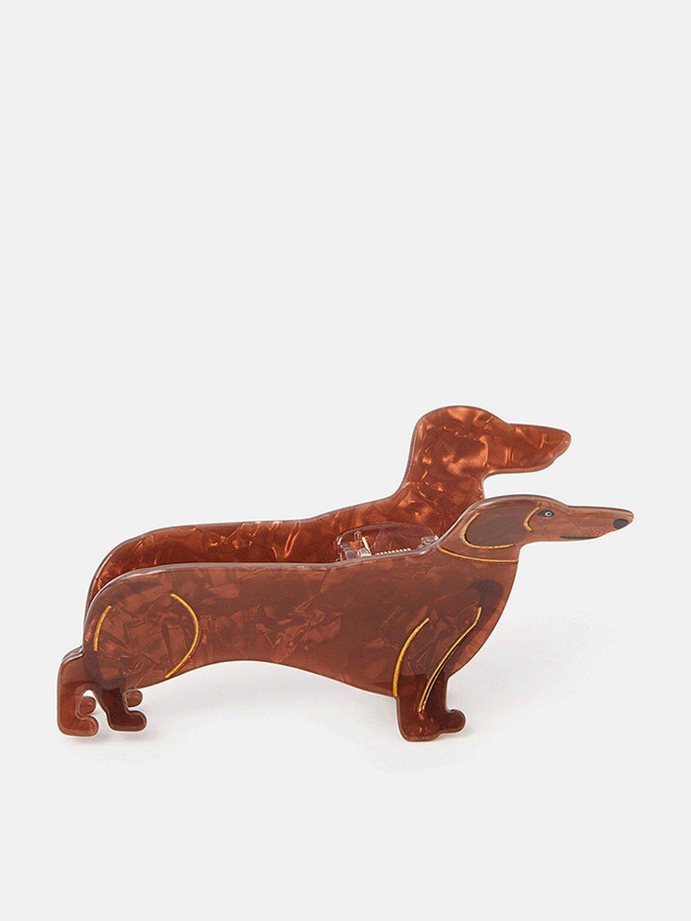 Accessorize Sausage Dog Claw Clip Size & Fit One Size Details Sausage Dog Claw Clip By Accessorize Cream Hair Clips Hinge Fastening Hairclip Material & Care Material Content: Composite: Acrylic 95% , Iron 5% Washing Instructions: Wipe Clean