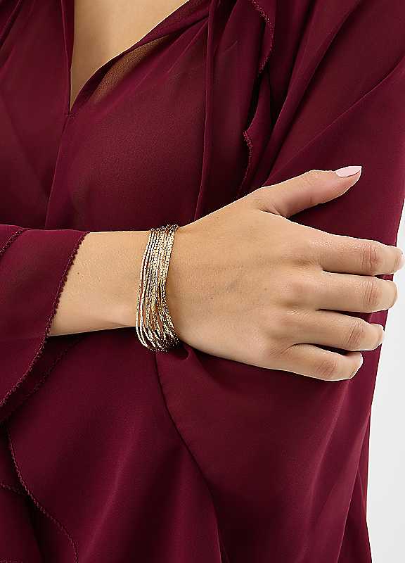 Showcasing rows of slinky snake chains in a gold tone, this bracelet creates a dazzling wrist stack with minimal effort. Say hello to your night-out look's new bestie.Wipe cleanComposite: 100% BrassLength approx. 18cm | chain bracelets, gold chain bracelet, chunky gold bracelet, snake chain bracelet, gold snake bracelet, layered bracelets gold, stacking bracelets, brass bracelets