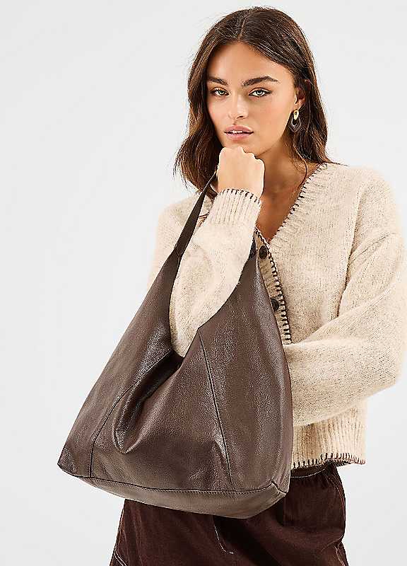 Accessorize Slouchy Leather Shoulder Bag - Chocolate - Size ONE SIZE