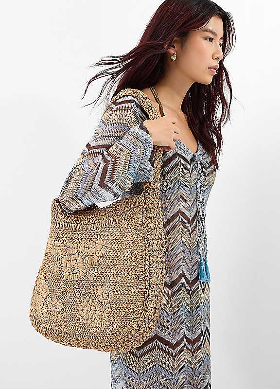 Primed for your next sunshine escape, this bag boasts a slouchy profile with a raffia finish that screams holiday. Inside you'll find a handy cotton pouch, ideal for storing your beach essentials. Our favourite part? The pretty flower motifs to the front, adding the perfect final touch.Outer: 100% PaperLining: 80% Polyester, 20% CottonSize approx. 43L x 40H cm