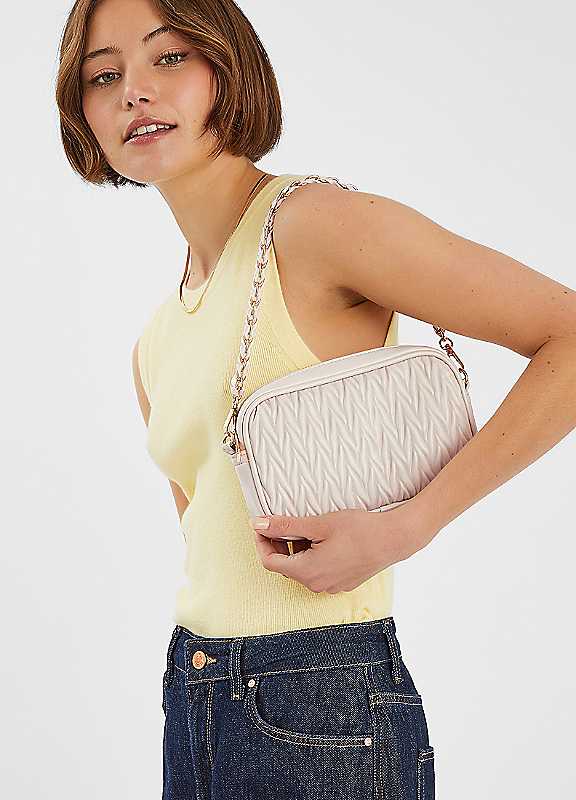 Small in size but big in style, this bag is a chic addition to your collection. Made of faux leather with a ruched, wrinkled texture, it's finished with a zip fastening and two detachable straps with options to sling over the shoulder or style across the body.Wipe cleanOuter: 100% Polyurethane (PU)Lining: 100% PolyesterDimensions approx. 11H x 4W x 18L cm
