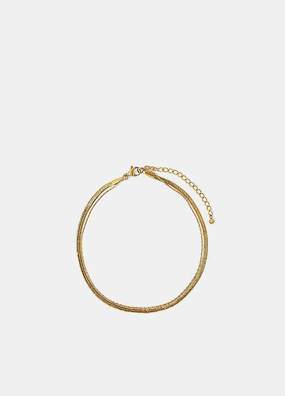 Dipped in a golden tone, this anklet is made for everyday styling. Showcasing an omega and dainty chain, it's finished with a lobster clasp fastening and extender.Wipe clean2% Acrylic, 98% Stainless SteelLength approx. 20 cm