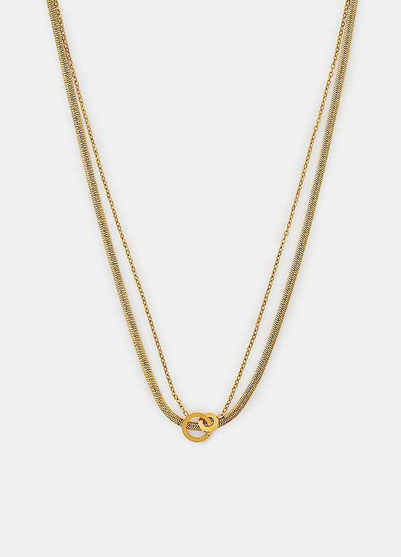 Make everyday a golden one.. Crafted in durable stainless steel, this necklace features an omega and classic chain interlocked with two ring pendants at the centre. Chic, right?Wipe clean100% Stainless SteelLength approx. 50 cm