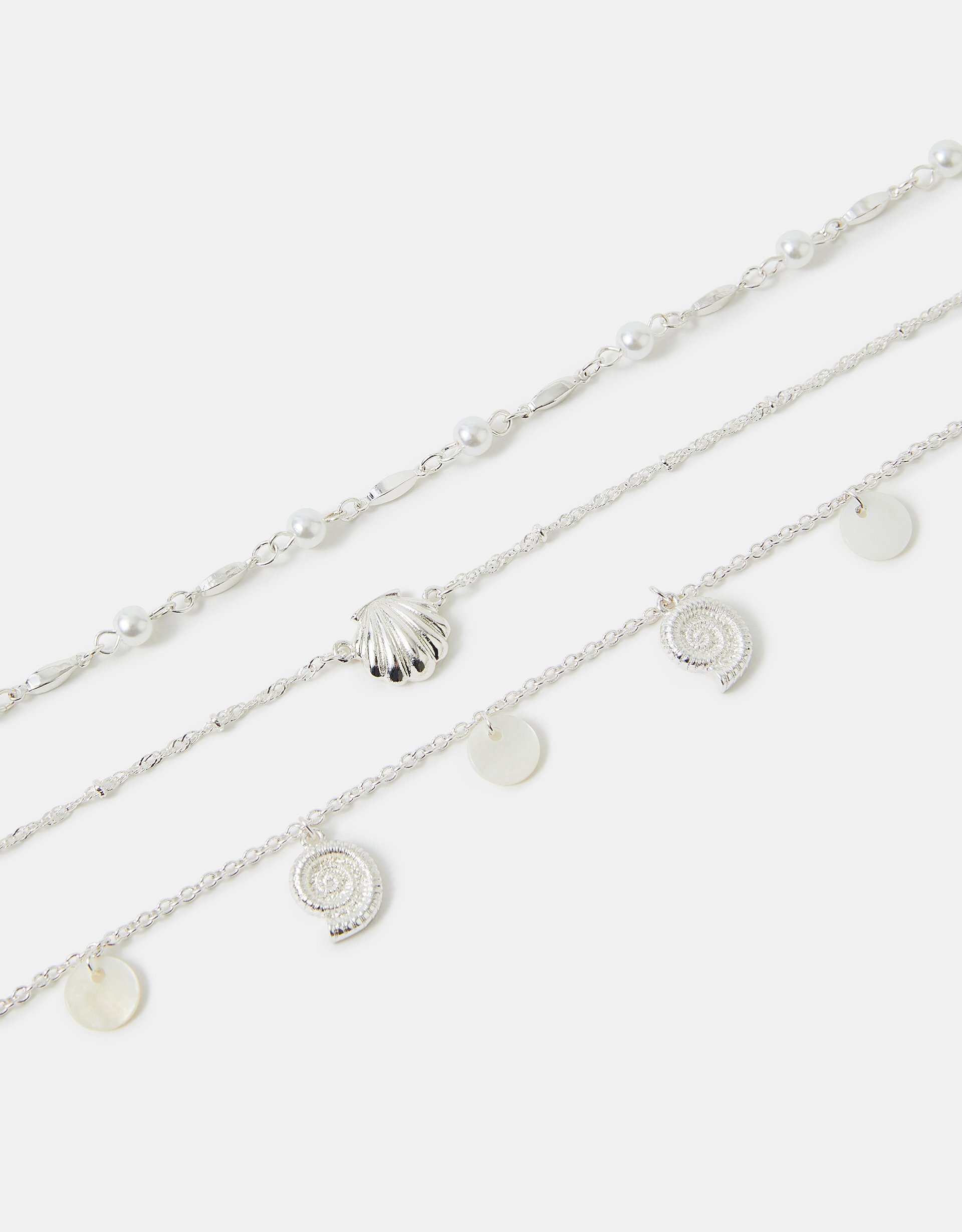 Accessorize Steel 3-Pack Shell Charm Anklets, Silver, Size: 24cm