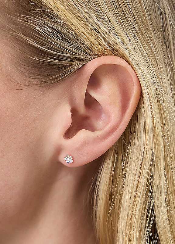 A pretty pick for any silver girlie. Crafted with solid 925 sterling silver, these earrings showcase dainty flowers that are perfect for your lobe piercings. Non-refundable. Wipe clean50% Sterling Silver (Recycled), 50% Sterling SilverHeight approx. 7 cm | flower silver earrings,silver tiny stud earrings,dainty stud earrings,small stud earrings,flower stud earrings,sterling silver stud earrings,sterling silver ear studs,silver stud earrings