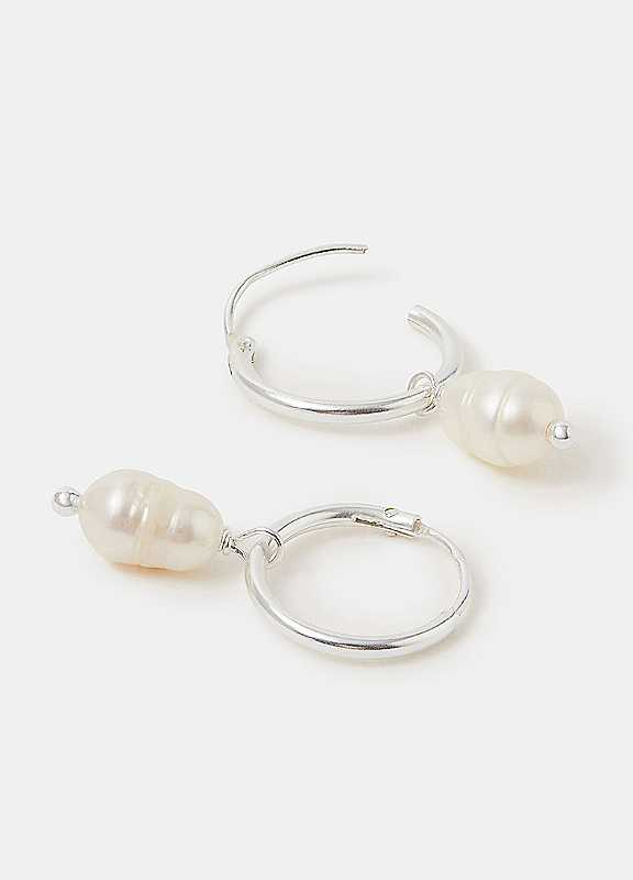 One word: timeless. Designed in solid 925 sterling silver, these earrings showcase an opulent pearl dangling from the hoop silhouette. Wipe clean 50% Pearl, 50% Sterling Silver () Length approx. 2 cm