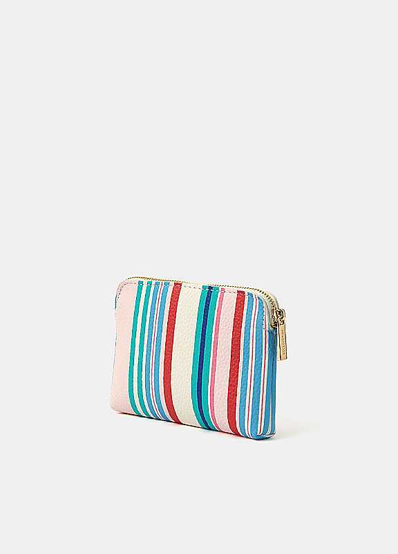 Made in faux leather and patterned with colourful stripes, this coin purse fastens with a zip. Great for storing loose change in your tote bag or keeping small treasures and trinkets safe.Wipe cleanOuter: 100% Polyurethane (PU)Lining: 100% Polyester (Recycled)Dimensions approx. 10H x 2W x 14L cm