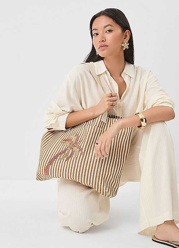 Accessorize Stripe Palm Embroidered Shopper Bag - Natural - Size ONE SIZE
