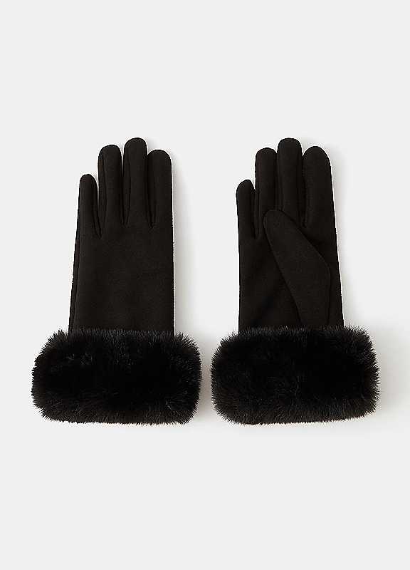 Accessorize Suedette Cuff Gloves - Black - Size ONE SIZE