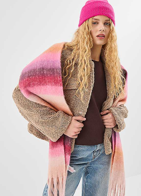 A hot girl (winter) walk essential. Stitched with super-soft yarns in a mix of pink, purple and peach stripes, this scarf keeps you snug in style all season long.Hand wash100% PolyesterSize approx. 200L x 20W cm