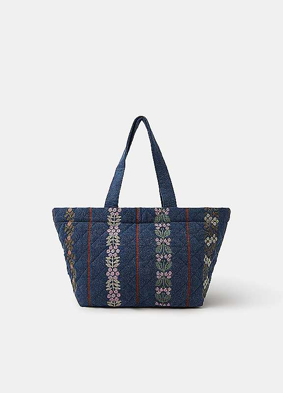 Accessorize Tapestry Quilted Denim Shopper Bag - Navy - Size ONE SIZE