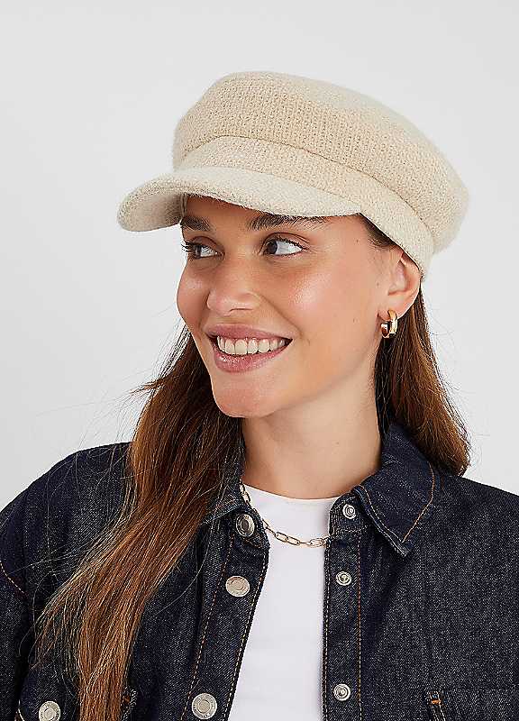 Accessorize Textured Baker Boy Hat - Cream - Size ONE SIZE