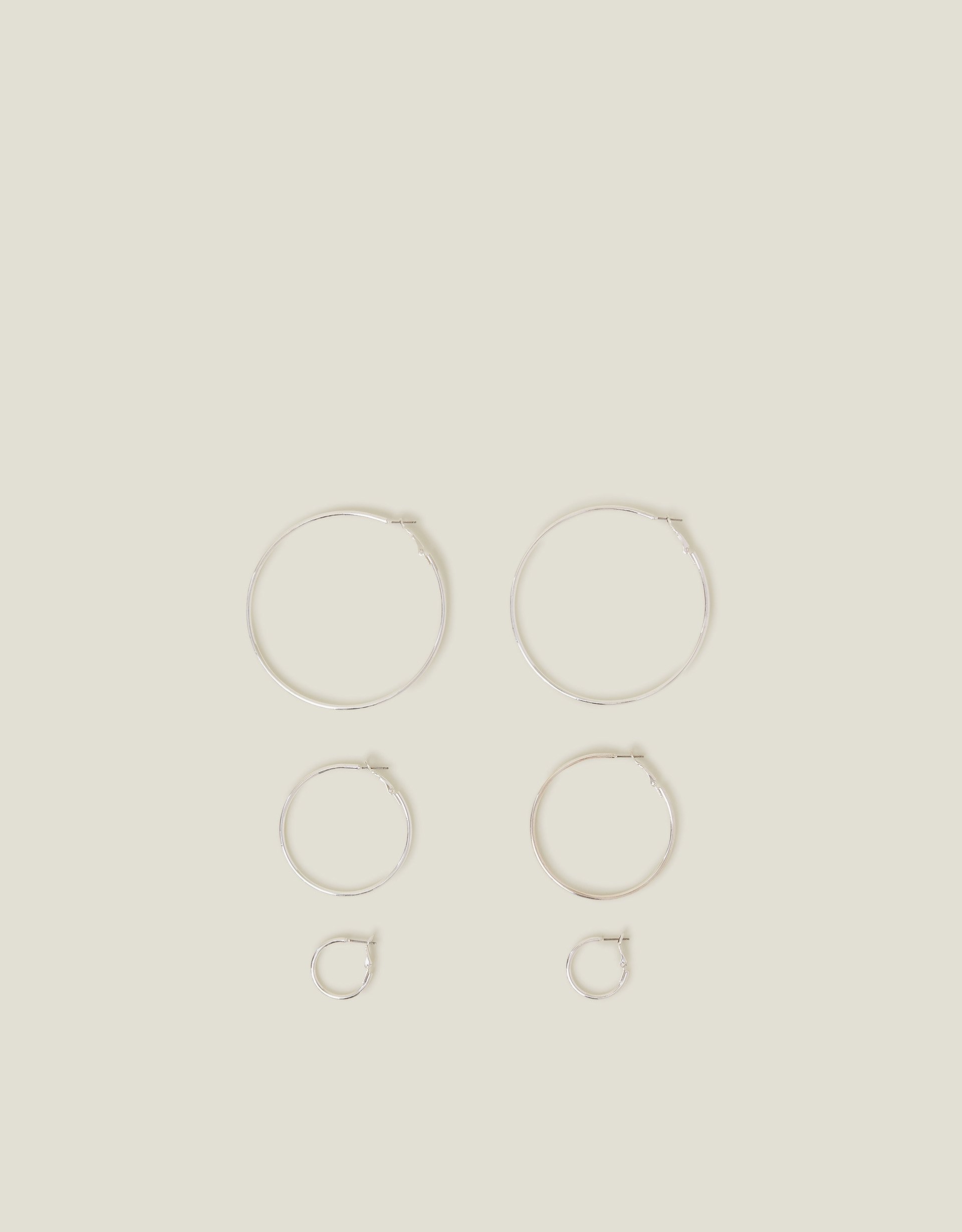 Accessorize Tile 3-Pack Hoop Earrings, Silver