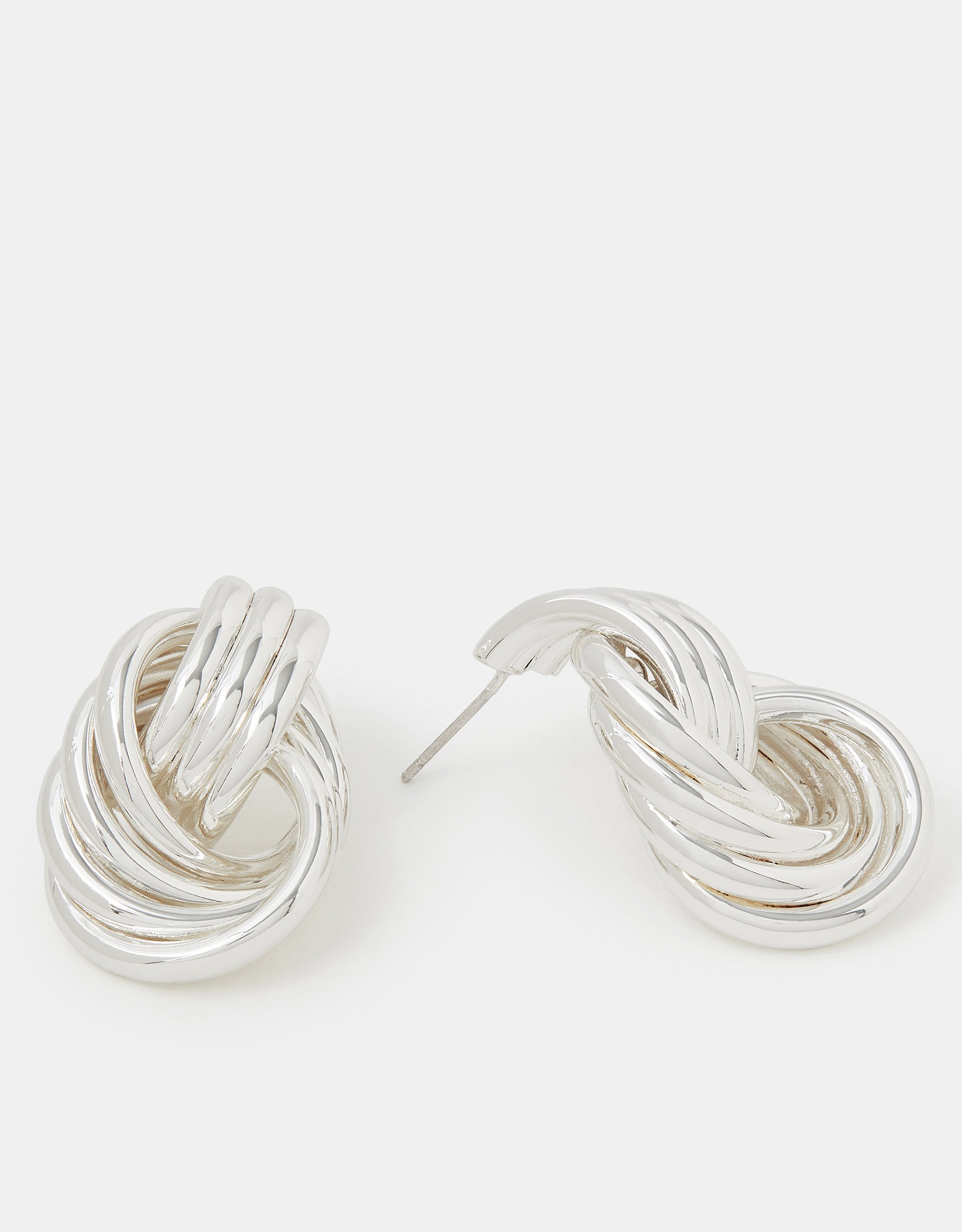 Not only are these a timeless addition to your jewellery box, they add a chic, vintage vibe to your look. Dipped in a silver tone for endless sparkle, these statement studs showcase a trio of links in a knotted design.Non-refundable.