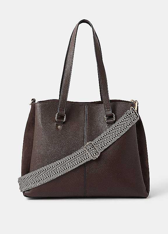 Accessorize Webbing Strap Faux Leather Shoulder Bag - Chocolate - Size ONE SIZE