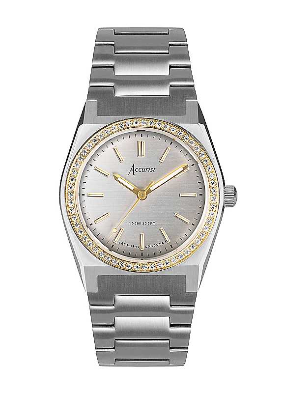 The Origin collection from the British watchmaker Accurist, inspired by our original 1970's best selling model.This watch has a solid stainless steel case, set with crystals, featuring a silver dial with luminous hands enclosed by sapphire crystal glass. Fastened with an interchangeable stainless steel bracelet and is water resistant up to 100 metres.Keep time with an iconic watch, traditionally designed by a British brand. Brand: Accurist Analogue Watch Silver Dial Stone Set Silver Stainless Steel Round 34mm Case Silver Stainless Steel Bracelet Crystal Glass Gold Hands 100 Metres Water Resistance 17mm Strap Width Minimum strap length - 150mm Maximum strap length - 197mm Japanese Movement 2 Years Guarantee
