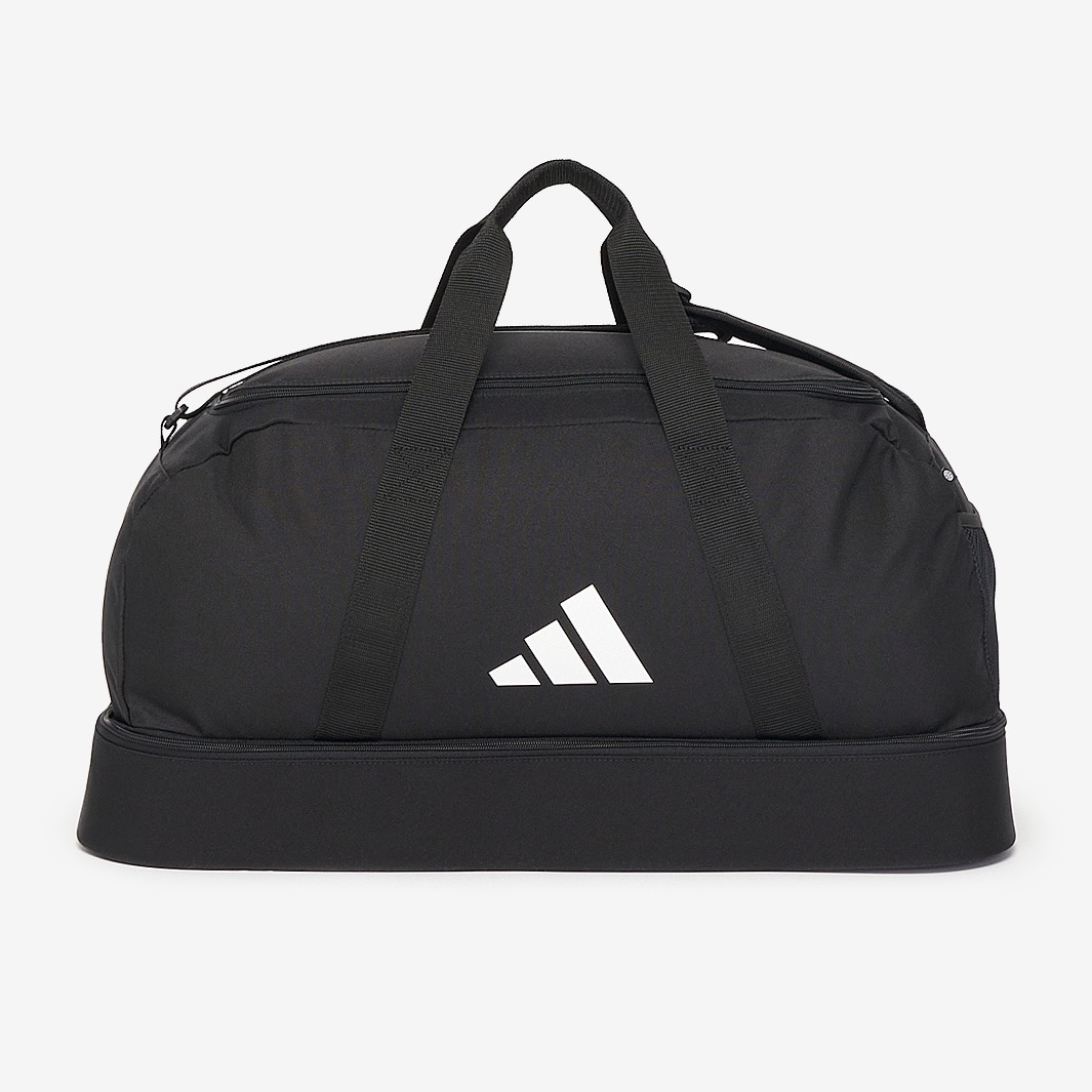 Keep your gear close to hand with the adidas 3 Stripe Tiro League Duffle Bag BC Medium in BlackWhite. Featuring a large main compartment with a wide zip opening for easy access, the Tiro League Duffle Bag provides allinone storage for your clothing, equipment, and accessories.Underneath, a hardcase bottom compartment protects against wear and tear ideal for the melee of a busy changing room.Grab handles and an adjustable shoulder strap offer multiple carry options. Dimensions 29 x 58 x 30cm Volume 40.75L 100 recycled polyester plain weave Hardcase bottom compartment Side mesh pocket Padded, adjustable shoulder strap Dual carry handles