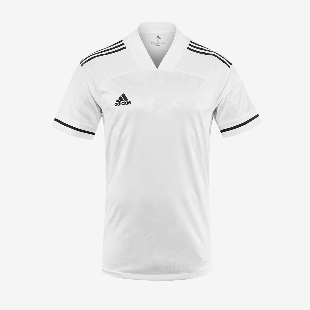 Maintain your composure in the adidas Condivo 20 Shirt WhiteBlack, made with AEROREADY fabric for lightweight performance. Designed for breathability and comfort, the adidas Condivo 20 Shirt features AEROREADY technology to wick sweat away from the body and keep you cool, fresh and ready to move. Mesh ventilation allows enhanced airflow, while a subtle patterned graphic adds extra style whether youre warming up, training, or playing a match. Softtouch sleeve cuffs Mesh ventilation inserts Front and back graphics This jersey is made with recycled polyester to save resources and decrease emissions Vneck Lightweight, sweatwicking AEROREADY Condivo lightweight graphic jersey Curved front with slight droptail back hem 100 recycled polyester jacquard