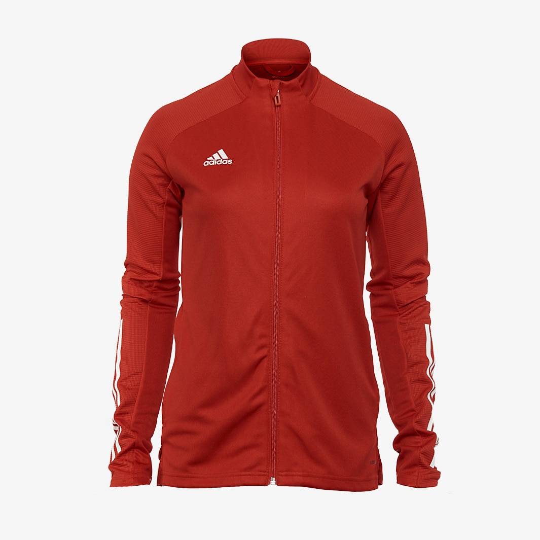 Achieve high levels of performance with optimum body temperature when you wear the adidas Condivo 20 Training Womens Jacket Team Power Red, made with AEROREADY fabric and a droptail hem to keep you ahead of the game. The adidas Condivo 20 Training Womens Jackets lightweight feel and slim fitting means you possess a high range movement, whilst the elasticated cuffs and low collar ensures you can do so at maximum comfort. The jackets AEROREADY technology absorbs moisture to keep you free from overheating, and the zipped pockets mean you can keep your precious valuables on you as you train. Partial elastic cuffs and hem Full zip with low collar Lightweight, moistureabsorbing AEROREADY fabric Zip pockets This jacket is made with recycled polyester to save resources and decrease emissions 100 recycled polyester doubleknit