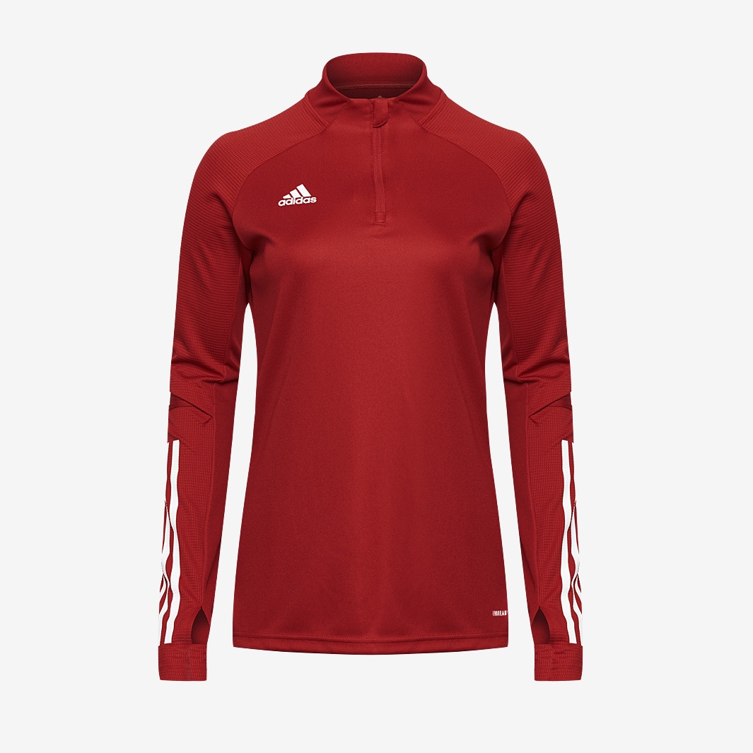 Prepare for football matches in the right way with the adidas Condivo 20 Womens Training Top Team Power Red, which is designed with a lightweight, moistureabsorbing fabric to keep you dry and mobile. Designed for use during training or warmups, the adidas Condivo 20 Womens Training Top uses AEROREADY technology to absorb moisture to keep you dry and comfortable as you begin to reach optimum performance. The tops lightweight design and elastic ribbing on the sleeves allows for a complete range of motion, whilst the shorter neck collar results in ultimate comfort with a dynamic fit. Droptail hem Quarter zip with low collar Lightweight, moistureabsorbing AEROREADY fabric Elastic ribbing on sleeves This top is made with recycled polyester to save resources and decrease emissions 100 recycled polyester