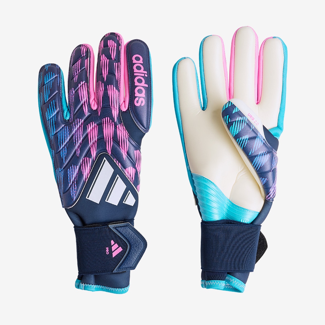 Keep it traditional with adidas Copa Pro Goalkeeper Gloves in Legend InkSolar BlueSolar Pink. Designed for keepers who prefer a classic feel, the Copa Pro features a combination mesh and latex backhand for the best mix of comfort and punching power. Everpopular URG 2.0 foam on the palm provides a balance between grip and durability, and its a negative cut for the snug fit that so many pro keepers swear by. At the wrist, an easypull elasticated strap keeps the glove securely in place. Negative cut with wrapped thumb Palm URG 2.0 100 latex Body 45 recycled polyester, 30 cotton, 20 polyurethane, 5 elastane Elastic wrist strap