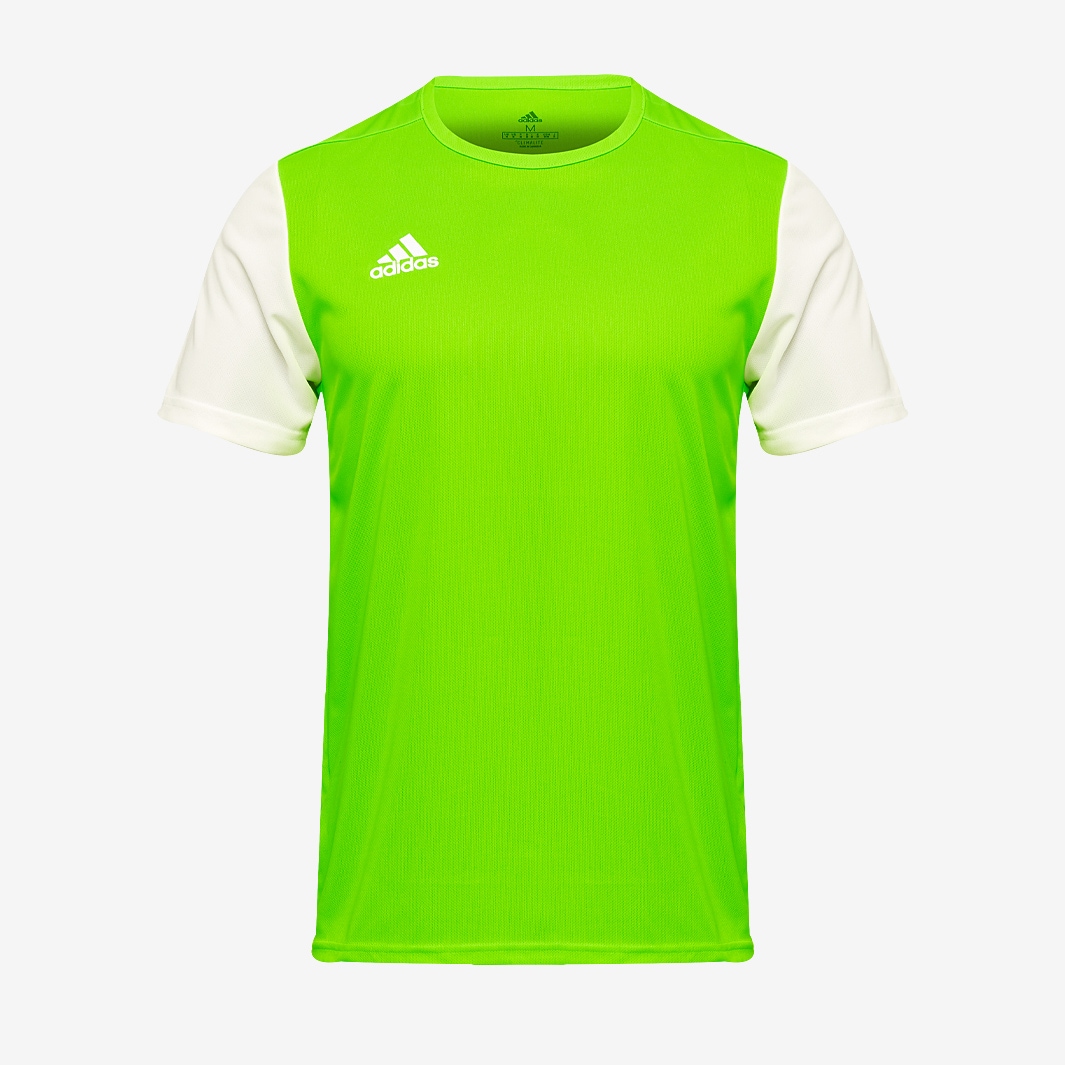Constructed from lightweight fabric, the adidas Estro 19 SS Shirt in Solar GreenWhite will help to keep you cool and comfortable. The worlds best sides wear the worlds best kit and so can you. Inspired by designs worn by international and club sides and manufactured to the same specification, the adidas Estro 19 SS Shirt benefits from sweatwicking fabric to keep you dry and comfortable. Utilising the latest lightweight and durable materials, it features innovative technologies engineered to enhance the performance of your team on the pitch. Available Until December 2026 Huge stock held ready for next day delivery Sweatwicking Climalite fabric Adidas logo The jersey is made with recycled polyester to save resources and decrease emissions 100 recycled polyester.