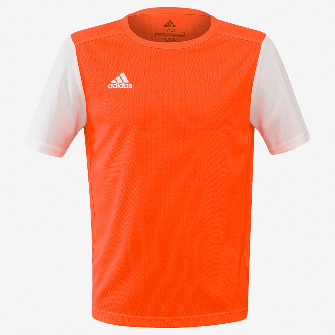 Constructed from lightweight fabric, the adidas Junior Estro 19 SS Shirt in Solar Orange will help to keep you cool and comfortable. Inspired by designs worn by international and club sides and manufactured to the same specification, the adidas Junior Estro 19 SS Shirt benefits from sweatwicking fabric to keep you dry and comfortable. Utilising the latest lightweight and durable materials, it features innovative technologies engineered to enhance the performance of your team on the pitch. Huge stock held ready for next day delivery. Sweatwicking Climalite fabric. Adidas logo. The jersey is made with recycled polyester to save resources and decrease emissions. 100 recycled polyester.