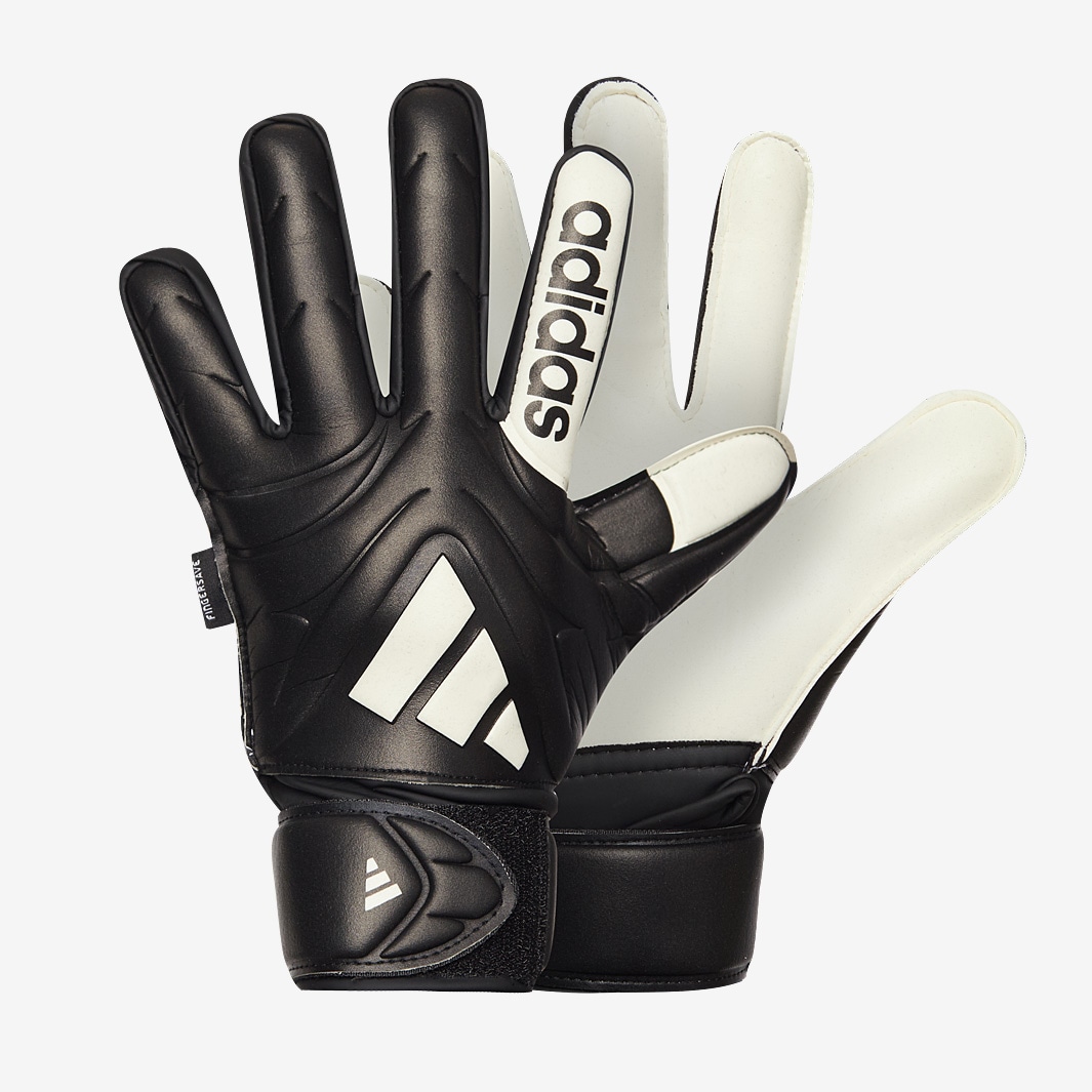 Keep it traditional with adidas Kids Copa Match Fingersave Goalkeeper Gloves in BlackWhite. Designed for keepers who prefer a classic feel, the Copa Match features a combination mesh and latex backhand for the best mix of comfort and punching power.Soft Grip Pro latex on the palm provides reliable grip in all conditions, and its a halfnegative cut for the snug fit that so many pro keepers swear by. Fingersave spines provide rigidity to help prevent overextension, while at the wrist, an easypull elasticated strap keeps the glove securely in place. Halfnegative cut with wrapped thumb Palm Soft Grip Pro latex Body 100 recycled polyester Halfwrap elastic wrist strap