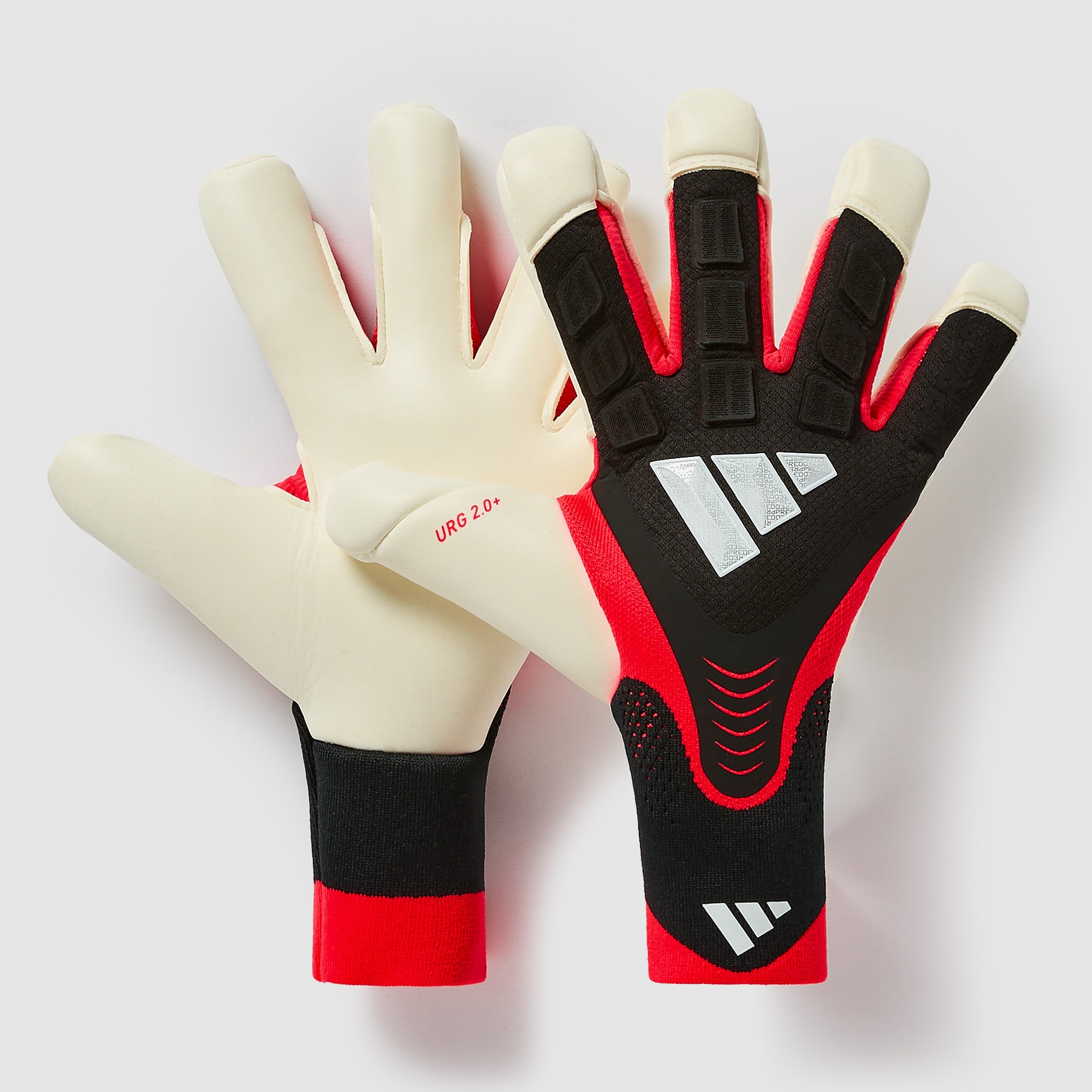 Stand tall amid the chaos wearing adidas Predator Pro Hybrid Goalkeeper Gloves in BlackLucid RedWhite. When the pressure mounts, only goalkeepers have the power to take control. Developed in collaboration with professional and amateur athletes alike, the Predators built to help you be the decisive factor in those big moments, rising above everyone to claim the ball and victory.Its an allnew design made with FusionMesh, which gives the perfect blend of breathability, stretch, and a soft feel to the backhand, letting your hands and fingers move comfortably while staying secure.At the punching zone, the grippy elements feature a more ergonomic shape for confident punching, while TipGrip fingertip wraps increase latex contact for greater ball control.On the Pro edition, the palms made from URG 2.0+ latex, an improved formula that gives a more direct feel of the ball when catching, thanks to some clever tech on the inside of the glove. Then there are the ThumbControl and lateral palm wraps, which minimise the use of seams to create a clean, grippy surface.The wrists a thin engineered knit with a fully elasticated strap, designed to be snug and stable without being bulky.Keepers, its your time. Predator range endorsed by MarcAndre ter Stegen, Manuel Neuer, and Emiliano Martinez Cut Hybrid negative with rolled elements Palm URG 2.0+ latex BackBody FusionMesh with cushioning punch elements Wrist Closure Thin engineered knit entry TipGrip finger wraps ThumbControl thumb wrap Lateral palm wrap Made in part with recycled materials