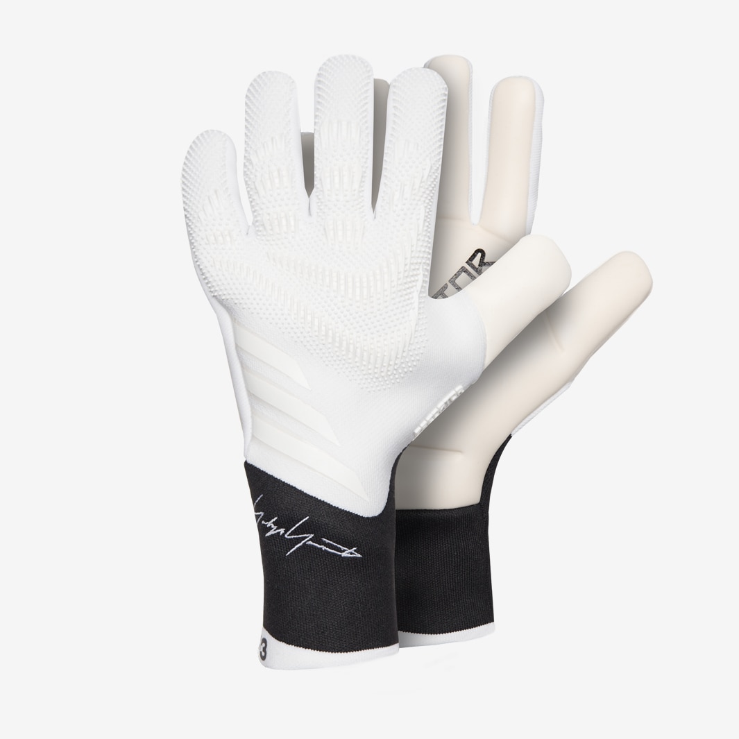 Make every save look simple with adidas Predator Pro goalkeeper gloves in WhiteBlack, featuring a limitededition, minimalist design courtesy of Yohji Yamamoto. Built to see you dominate your box, the Predator Pro features aggressive texturing on the backhand for powerful punches. Strategically placed to offer enhanced grip, the contoured rubber fins ensure you get maximum purchase on the ball when you connect with a clearance, while the more subtle pimpled texturing gives you control over direction. The glove bodys engineered knit offers an adaptive fit, following the shape of your hand and wrist as you play while remaining secure and stable. Refined for improved flexibility and comfort, the palm features reinforced grooves at all the key joints, providing a more natural feel as you catch, punch, and handle the ball. The latex itself is adis everpopular URG 2.0 formula, serving up matchwinning grip in all weather conditions. Limited edition Y3 colourway Yohji Yamamotos signature and Y3 logo on wrist closure Cut Negative Palm URG 2.0 latex Body 89 recycled polyester, 10 elastane, 1 nylon Backhand Engineered knit Rubber High Definition Grip elements Wrist Closure Strapless, compressive entry Extended latex grip on thumb Made in part with recycled materials
