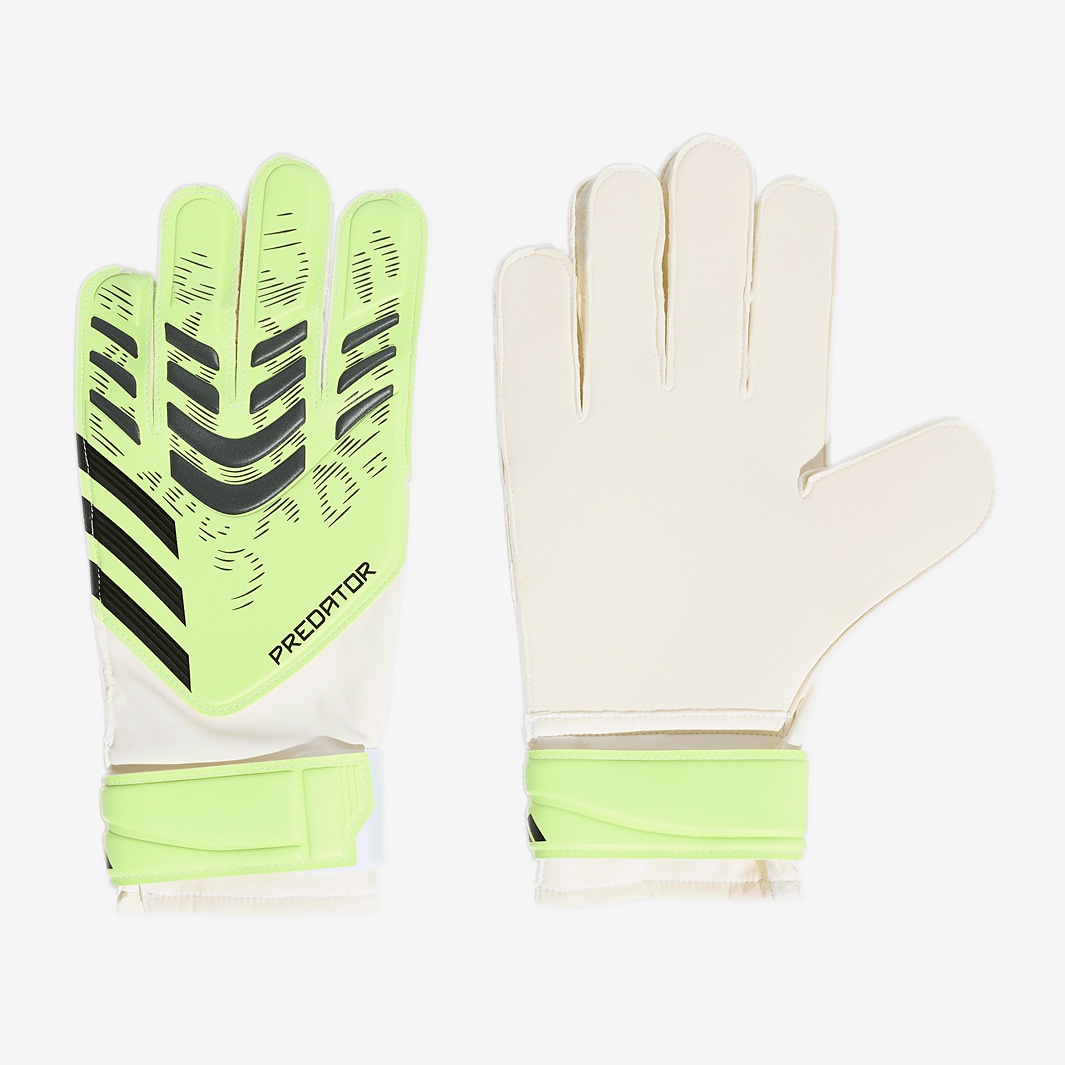 Play with total confidence wearing adidas Predator Training goalkeeper gloves in Lucid LemonWhiteBlack, featuring an updated backhand for superior support. The refined padded elements in the punch zone provide grip while allowing natural flexion of the hand, integrating with the lightweight body for ultimate wearing comfort whether catching or punching.At the wrist, the closure features a halfwrap strap to lock you in and eliminate distractions.For grip, its the popular Soft Grip formula, offering reliable performance in all conditions. Predator range endorsed by MarcAndre ter Stegen, Manuel Neuer, and Emiliano Martinez Cut Positive Palm Soft Grip latex Body 65 recycled polyester, 35 polyurethane Backhand Textile Padded grip elements Wrist Closure Halfwrap elastic strap Made in part with recycled materials