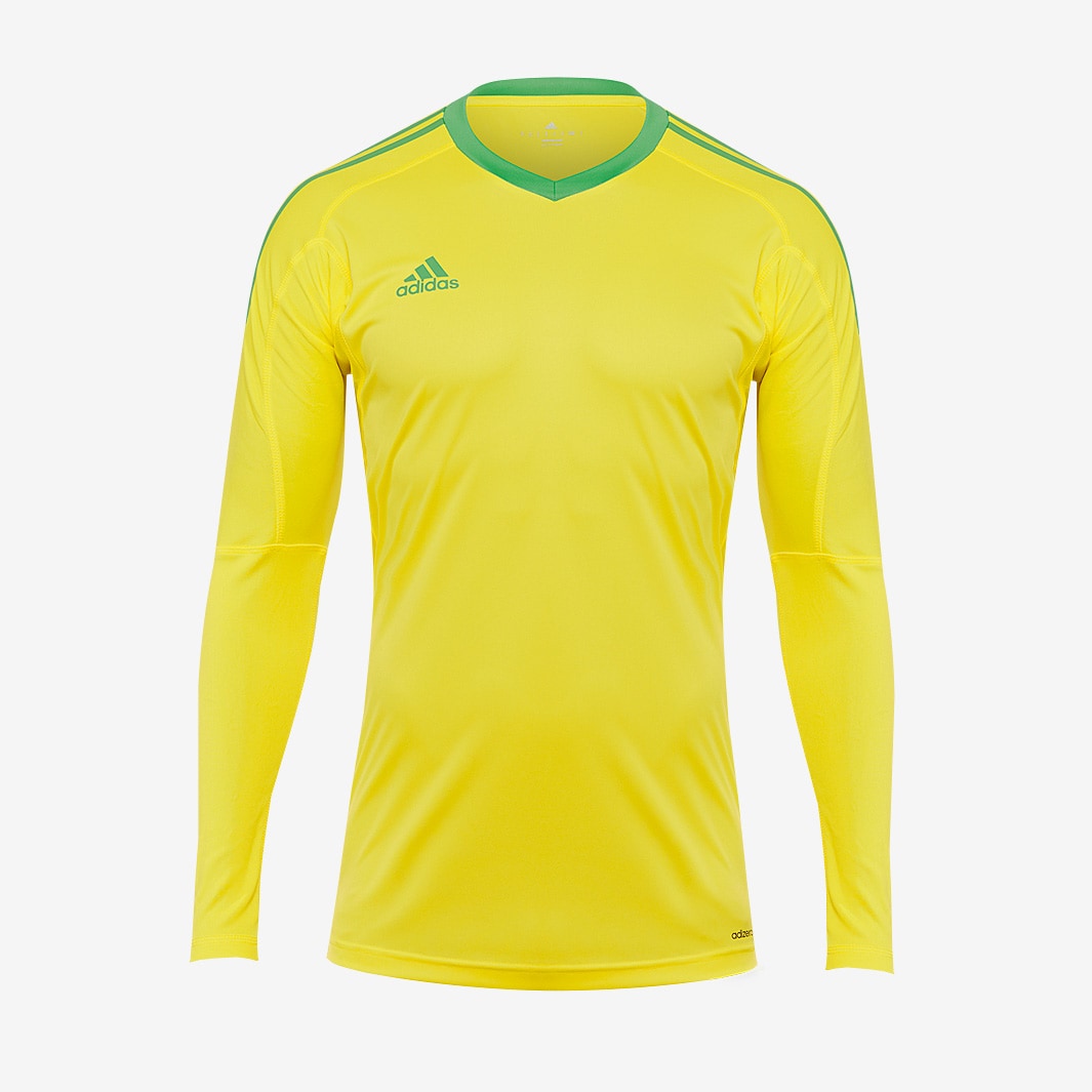 The adidas Revigo 17 LS GK Shirt in Bright Yellow is developed and tested with top goalkeepers to ensure top performance. Design and comfort work together so you can focus completely on the ball. This jersey is made from an innovative super stretchy fabric that allows for excellent ease of movement. Its designed with underarm fabric extensions to ensure it doesnt ride up while you defend. The closefitting cuffs keep the jersey in place and are designed to end where your gloves start, providing seamless protection and coverage. adidas is dedicated to creating products in ways that minimise their environmental impact. This product is made from recycled polyester to save resources and decrease emissions Lightweight moisturesweeping material Regular fit Vneck 100 recycled polyester interlock