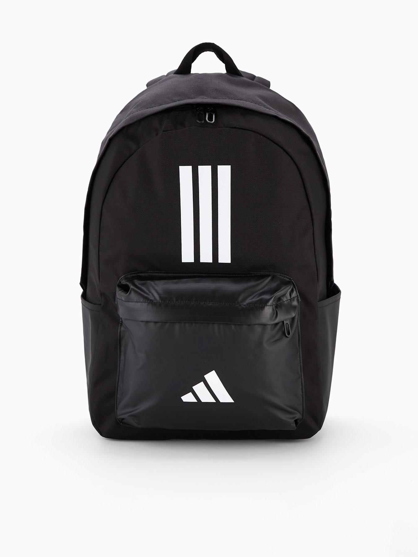 adidas Sportswear Unisex Classic Back-To-School 3-Stripe Backpack Size & Fit Volume: approx 27L Details Unisex Classic Back-To-School 3-Stripe Backpack by adidas Sportswear Black Front zip pocket Slip-in side pockets Adjustable padded shoulder straps Product colour: Black / White Washing Instructions: Wipe Clean