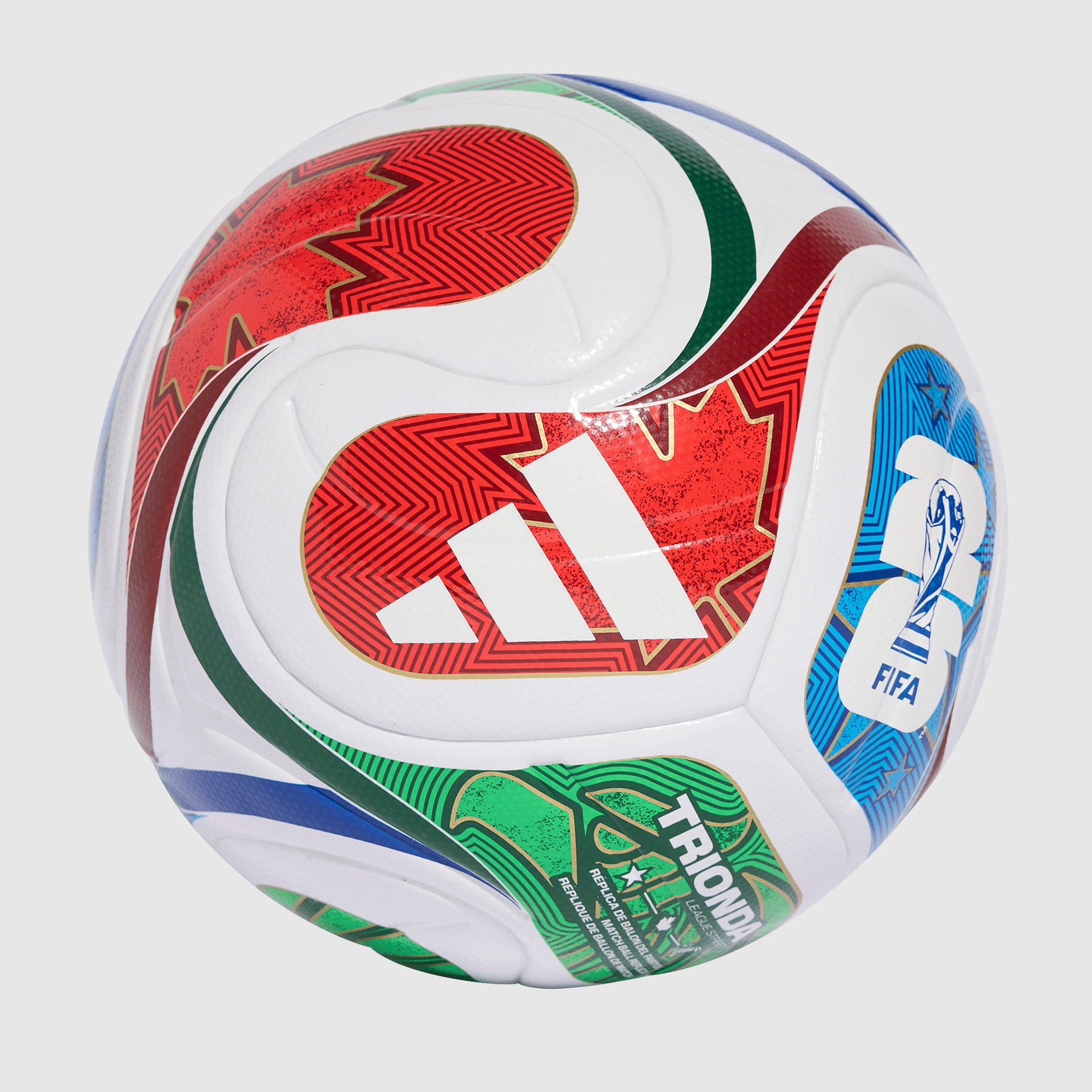 Celebrate the World Cups arrival in North America with the adidas Trionda Large Street Football in WhiteTeam Royal BlueSolar BluePower Red, an eyecatching street ball based on the ones used by the likes of Ballon dOr holder Ousmane Dembele, Lamine Yamal, Declan Rice and Lionel Messi as they compete for the biggest prize in world football. As the World Cup arrives in North America for the first time in more than 30 years, since USA 94, the official Trionda football pays tribute to the host nations with both its name and design. Tri nods to the three tournament hosts, and Onda wave in Spanish and Portuguese evokes the motion of the iconic La Ola Mexican wave performed by fans as they will their nation on to greatness from the stands. A classic white base is overlaid with a swirling, tricoloured design, with blue graphics that showcase the stars and stripes of the USA flag, red graphics that prominently display Canadas iconic maple leaf, and green graphics emblazoned with the legendary Mexican Eagle that acts as the centrepiece of the countrys flag and Federacion Mexicana de Futbol Asociacion national crest. Made specifically for street football, the lowrebound design delivers outstanding control in tight spaces, whether youre playing classic 5aside cage football, honing your skills in the back garden or having a casual kickabout on concrete or tarmac. A laminated, seamless surface delivers outstanding abrasion resistance and superb durability, so you dont have to worry about wearandtear on aggressive hard surfaces. adidas Trionda 2026 World Cup League street football Based on the ball used at the 2026 World Cup FIFA Quality certified FIFA World Cup logo and Trionda lettering Graphics inspired by three host nations of Canada, Mexico and the United States of America New fourpanel design Seamless TSBE construction Laminated, textured surface Lowrebound bladder 100 TPU cover Requires inflation