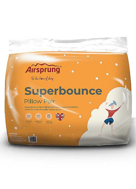 Support your sleep experience with officially licensed Airsprung superbounce hollowfibre pair pillows-an exclusive offering that guarantees unparalleled comfort and are ideal for side sleepers. These pillows feature a supersoft microfibre fabric that not only securely encases the filling but also provides an irresistibly smooth and plush feel. These pillows are generously filled with hypo-allergenic soft hollowfibre. Each strand of hollowfibre to intelligently perforated allowing moisture to effortlessly wick away from your body, promoting optimal airflow, and ensuring uninterrupted slumber. Proudly made in the up, these pillows reflect British craftsmanship. Additionally, they are machine washable, guaranteeing effortless care and maintenance.Machine Washable at 40cMicrofibre (100% Polyester)