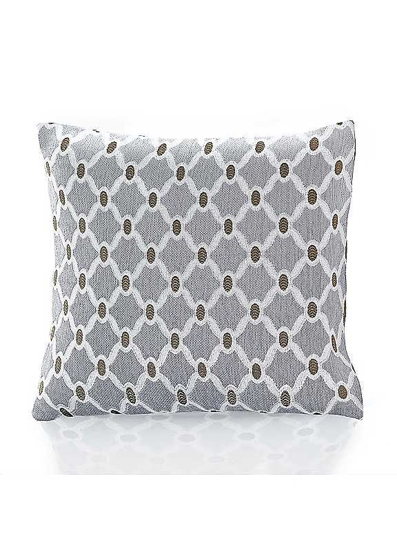 Looking for a stylish and unique way to add some texture and pattern to your home decor? Our geometric chenille cushion is the perfect solution! Crafted from high-quality chenille fabric, this cushion features a stunning geometric design in multi-colour yarns. The intricate pattern and bold colours make it a perfect statement piece for your living room or bedroom.Not only is this cushion visually striking, but it's also incredibly soft and comfortable. The chenille fabric provides a plush and cosy feel that you'll love sinking into after a long day. The hollow fibre pad is plump and pliable.The high-quality construction of this cushion ensures its durability and longevity. It's designed to withstand daily wear and tear, so you can enjoy its beauty and comfort for years to come. In addition to its stylish design and comfort, this cushion is also easy to care for.Simply spot clean or machine wash the cover as needed to keep it looking fresh and new. Available in a range of colours to fit your style preferences, it's the perfect addition to any home decor. Brand: Alan Symonds Heavy Chenille fabric Hard wearing Machine washable Line dry Light iron only 100% Polyester | grey gold cushions, polyester fill for cushions, modern couch cushions, contemporary decorative pillows, polyester fiber pillow, chenille decorative pillows, geometric decorative pillows, light grey pillows, grey pattern cushions, square cushions for sofa