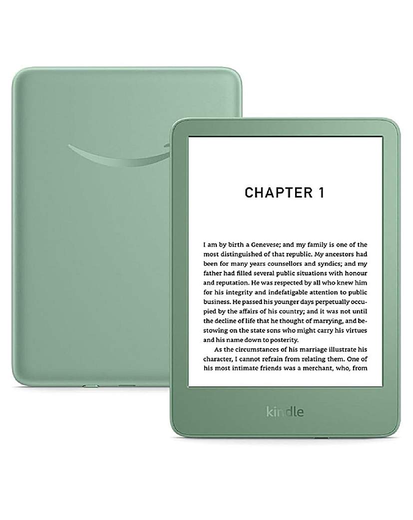 The lightest and most compact Kindle - Now with a brighter front light at max setting, higher contrast ratio and faster page turns for an enhanced reading experience Effortless reading in any light - Read comfortably with a 6 glare-free display, adjustable front light - now 25% brighter at max setting - and dark mode. Escape into your books - Tune out messages, e-mails and social media with a distraction-free reading experience. Read for a while - Get up to 6 weeks of battery life on a single charge. Take your library with you - 16 GB storage holds thousands of books, magazines and comics. Designed with sustainability in mind - This Kindle uses 75% recycled plastics, 90% recycled magnesium and has 99% of packaging made of wood fibre-based materials from responsibly managed forests or recycled sources. In the box: Kindle, Usb-C charging cable and Quick Start Guide. "