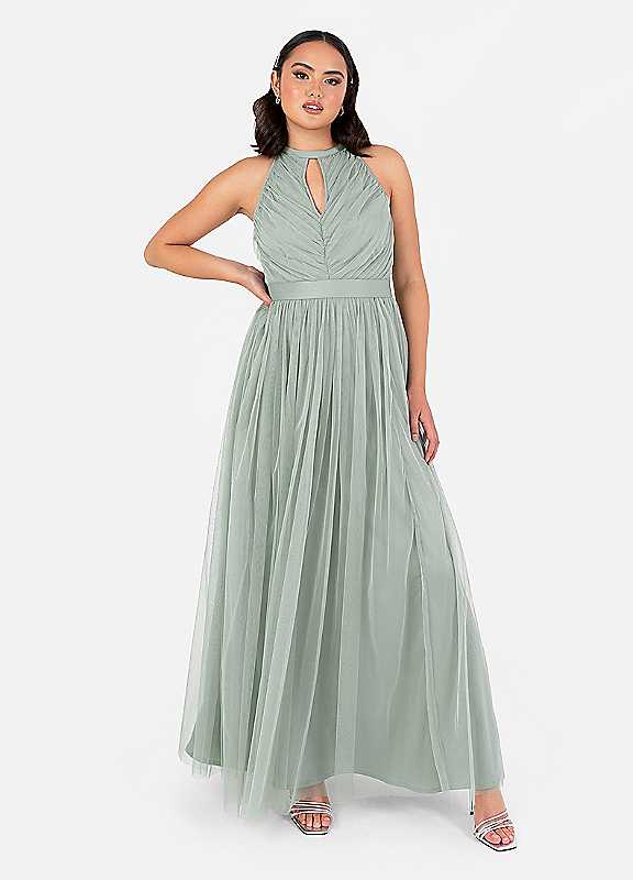 Anaya With Love Recycled Frosty Green Halter Neck Maxi Dress with Sash Belt - Size 12