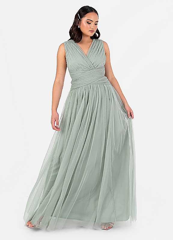 Anaya's signature style is showcased through the meticulously gathered detailing that flows throughout the entire maxi, creating a dreamy, ethereal aura. A striking criss-cross gathered waist panel highlights the dress's natural A-line silhouette, while the sleeveless, faux-wrap bodice with a V-neckline enhances its feminine charm. This Frosty Green piece is completed with a gathered maxi skirt - a light and airy design perfect for the dance floor. Style this piece with strappy heels and a shimmering clutch for a glam finish or pair with pastel accessories for an effortless day look.Machine washable100% Recycled Polyester (Excluding Trims) | maxi dress for women, spring maxi dress, ruched maxi dress, sleeveless maxi dress, green dress for women, light green dress, faux wrap dresses, a line dress, pastel green dress, plus size green dress, green maxi dress, casual party dress, v neck maxi dress