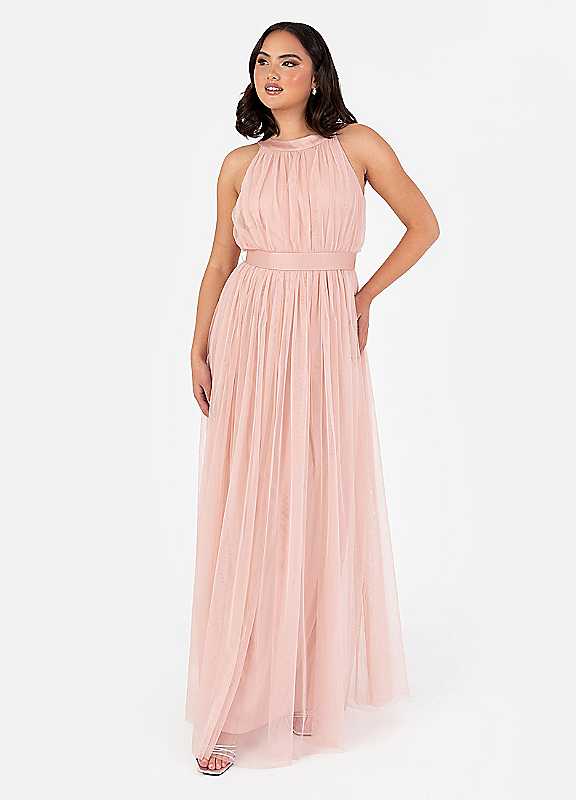 At Anaya with Love each item is consciously designed and made with recycled fabric allowing you to embrace both style and sustainability. A dress straight from our most whimsical dreams this Anaya dress has character and softness all in one. A beautiful halter neckline with tightly gathered tulle bodice decorated with satin trims add charm to the design. Anaya's signature Tulle maxi skirt flows into an A-line silhouette that's flattering for all body shapes. This dress is body lined for comfortable wear and a hidden zip fastening to the back allows for a seamless look.Machine washable at 30°C100% Polyester