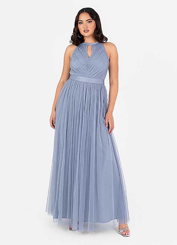 Anaya With Love Recycled Slate Blue Halter Neck Maxi Dress with Sash Belt - Size 14