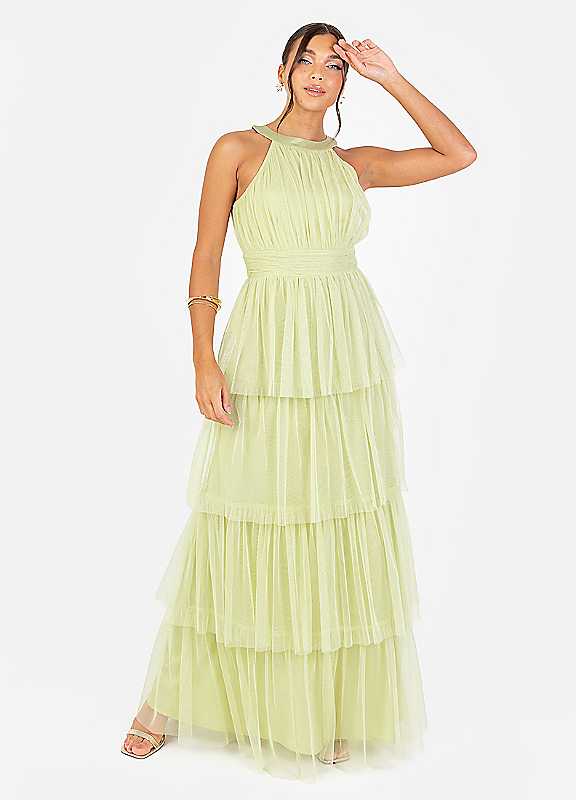 Anaya With Love Recycled Spring Green Halter Neck Tiered Maxi Dress - Size 26