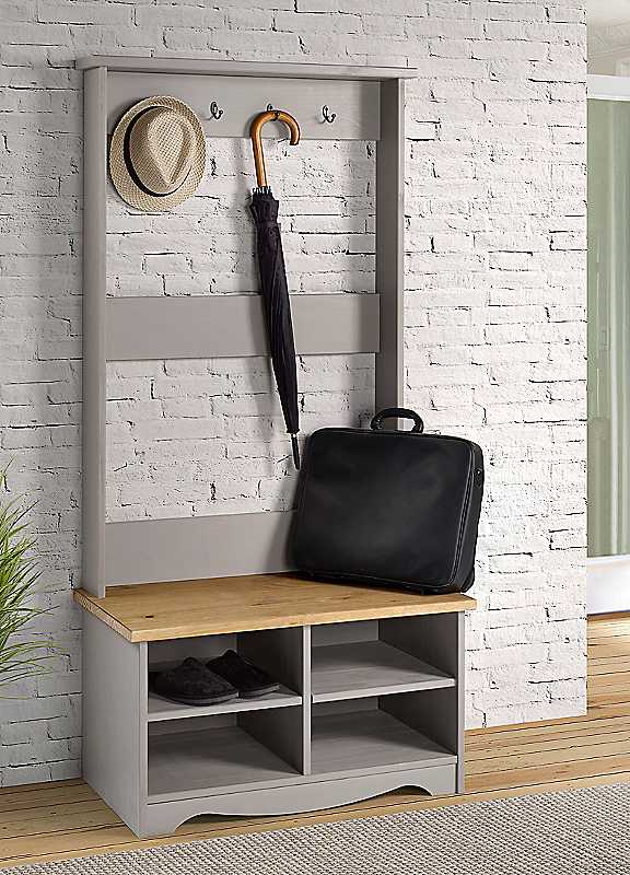As practical as it is rich in character, this hall bench is made from responsibly sourced pine and finished in a grey washed wax and contrasting antique wax. With four hanging rails and four shoe shelves, it also offers plenty of storage. It's compact design is perfect for where space is a premium and it brings a focal point to any entrance space within the home. Easy to build and easy to clean. Grey washed wax finish Minimal assembly required Pine Please remember to measure your available space before ordering. If using on an un-carpeted floor we recommend rubber or felt protection pads be used under the legs to avoid damage to your floors. For Assembly Instructions click here