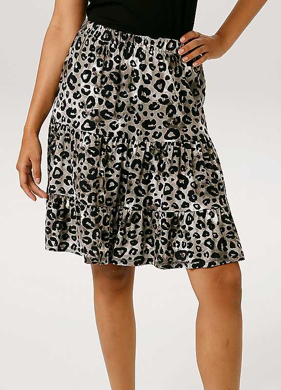 Aniston Leopard Print Skirt - Grey Print - Size 12