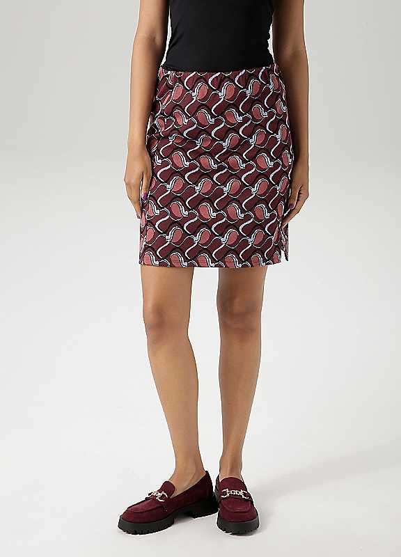 Aniston Retro Print Mini Skirt - Burgundy Print - Size 18