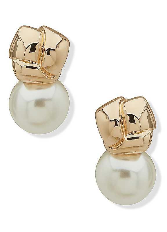 Anne Klein Pearl Knot Stud Earrings - Cream - Size ONE SIZE