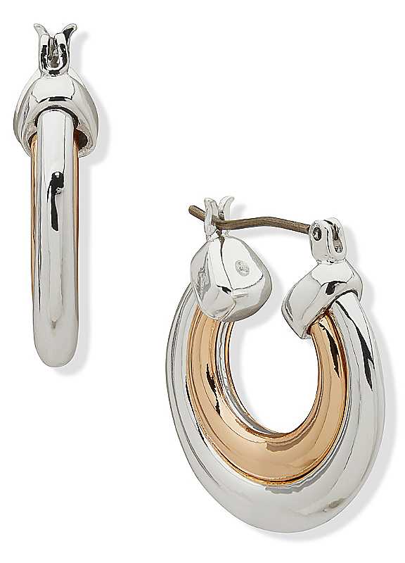 Anne Klein Two Tone Double Hoop Earrings - Silver/Gold - Size ONE SIZE