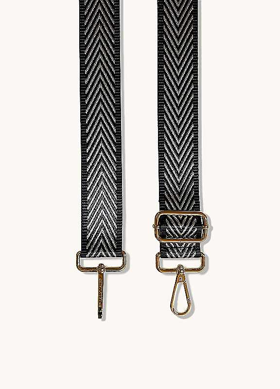 Enhance your bag's look with this striking black & silver chevron strap, perfect for adding a stylish touch. 95% Nylon, 5% Gold Hardware Woven Strap: Minimum length approx. 64 cm approx. & maximum length approx. 122 cm Minimum length approx. 25 inches, maximum length approx. 48 inches Woven strap width approx. 3.8 cm Approx. 1.5 inches | nylon crossbody bag, woven crossbody bag, multi color bag, casual crossbody bag, wide strap, gold silver handbags