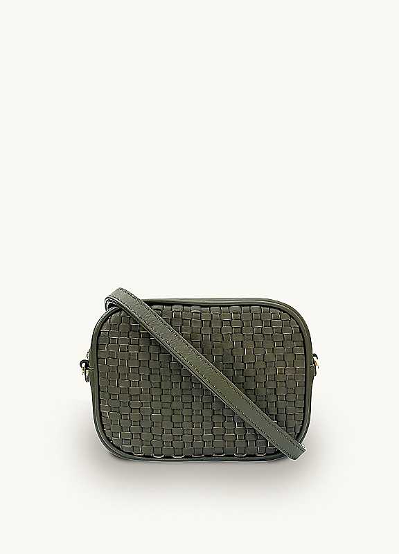 Apatchy London The Penelope Woven Leather Camera Bag - Green - Size ONE SIZE